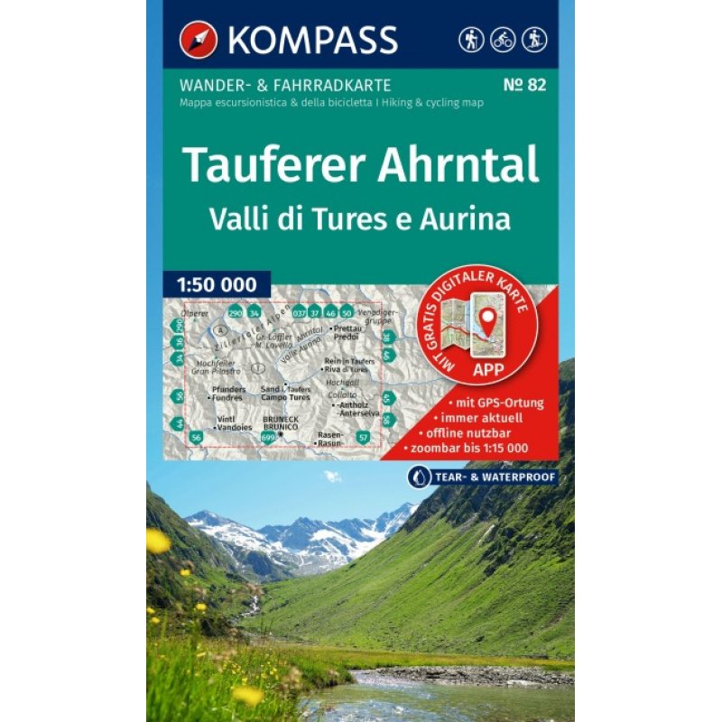 KOMPASS Wanderkarte 82 Tauferer Ahrntal, Valle di Tures e Aurina 1:50.0004in1 Wanderkarte, mit Aktiv Guide und Detailkarten inklusive Karte zur offline Verwendung in der KOMPASS-App. Fahrradfahren. Skitouren.
