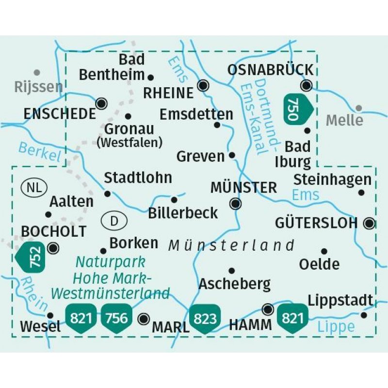 Das Gebiet zwischen der Römer-, Domund Siegfriedstadt Xanten am Niederrhein, der quriligen Metropole Münster und dem niedersächsischen Osnabrück birgt viele Überraschungen. Wer sie per pedes, mit dem Rad oder hoch zu Ross ansteuern möchte, kommt um dieses brandneue KOMPASS-Kartenset nicht herum. Auf sechs Kartenseiten im Maßstab 1:50 000 bleibt kein Highlight und kein Geheimtipp unentdeckt! Die topaktuell recherchierten Karten zeigen alle Wander-, Rad- und Reitwege, Verkehrslinien mit Bushaltestellen und Bahnstationen, Einkehrmöglichkeiten und Freizeit- Attraktionen. Die KOMPASS Wanderkarten überzeugen durch - eine GPS-genaue und aktuelle Karte zur einfachen Orientierung - lesefreundliche Optik im idealen Maßstab von 1:25.000/1:35.000 oder 1:50.000