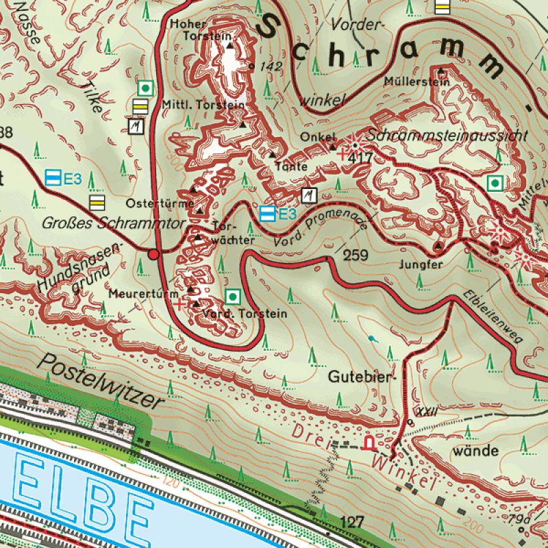 Für einige ausgewählte Gebiete sind Wanderkarten im Maßstab 1 : 10 000 und 1 : 15 000 verfügbar. Auf der Grundlage der topographischen Karten zeigen zusätzliche Farbüberdrucke markierte Wanderwege, Freizeit- und Touristikeinrichtungen. Auf der Vorder- oder Rückseite sind Informationen zu touristischen und geographischen Besonderheiten ausgewiesen.