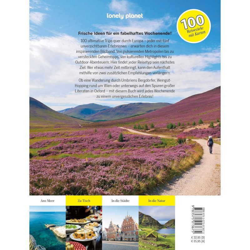100 ULTIMATIVE WOCHENENDTRIPS von LONELY PLANET! Dieses inspirierende Buch präsentiert aufregende Wochenend-Ideen quer durch Europa – jede mit fünf unverzichtbaren Erlebnissen. Von pulsierenden Metropolen bis hin zu versteckten Geheimtipps, von kulturellen Highlights bis zu Outdoor-Abenteuern: Hier findet jeder Reisetyp sein nächstes Ziel. Wer etwas mehr Zeit mitbringt, kann den Aufenthalt mithilfe von zwei zusätzlichen Empfehlungen ganz einfach verlängern. Ob eine Wanderung durch Umbriens Bergdörfer, Weingut-Hopping rund um Wien oder unterwegs auf den Spuren großer Literaten in Oxford – mit diesen Tipps wird jedes Wochenende zu einem unvergesslichen Erlebnis!