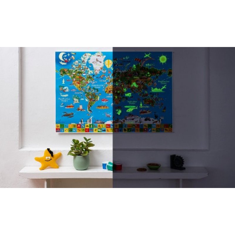 Nachtleuchtende, traumhafte Wandkulisse mit Leuchtakzenten, die nicht nur Kinder begeistern! Das bekannte Lieblingsmotiv Deine bunte Erde sorgt für behütetes Einschlafen und glückliches Aufwachen. Tagsüber staunen, lachen, Geschichten erzählen. Abends kuschelig ins Traumland eintauchen. Das mögen große und kleine Langschläfer.