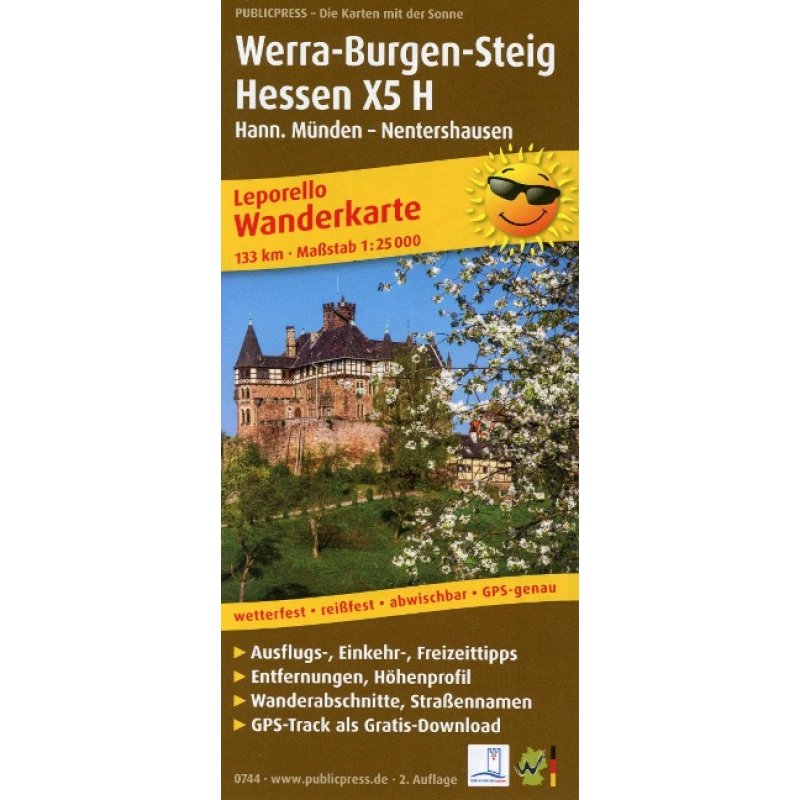 Der Werra-Burgen-Steig: Herrliche Aussichten und stolze Burgen am Werraufer Die ca. 130 km werden höchsten Wanderansprüchen gerecht und bieten einen geschichtsträchtigen Weg. Beginnend in Hann. Münden, da "Wo Werra sich und Fulda küssen …", verläuft der Werra-Burgen-Steig Hessen (X5 H) durch malerische niedersächsische Orte. Auf schönen Pfaden begegnet man auf der Strecke Schloss Berlepsch, der Jugendburg Ludwigstein, dem Schloss Rothestein mit grandiosen Ausblicken auf das Werratal und weiteren Burgruinen bis hin zur mittelalterlich belebten Tannenburg. Fachwerkstädte wie die Kirschenstadt Witzenhausen, die Kurstadt Bad Sooden-Allendorf und Eschwege mit dem Landgrafenschloss bieten schöne und historische Altstädte mit angrenzenden Naturparklandschaften.