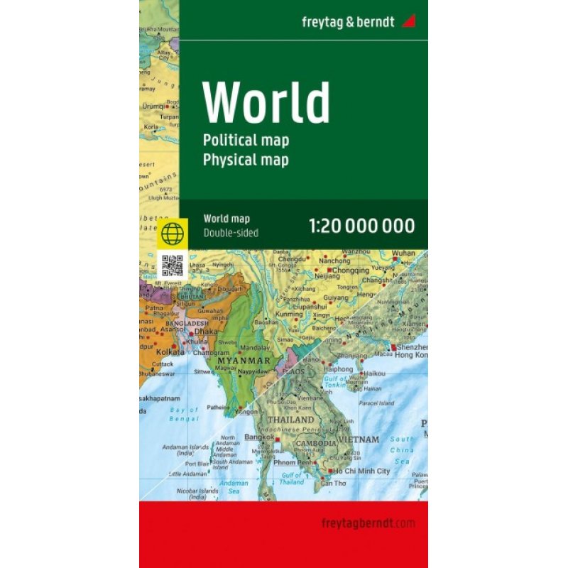 World map, political - physical, 1:20.000.000, freytag & berndt
